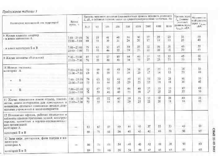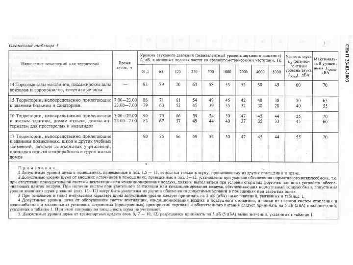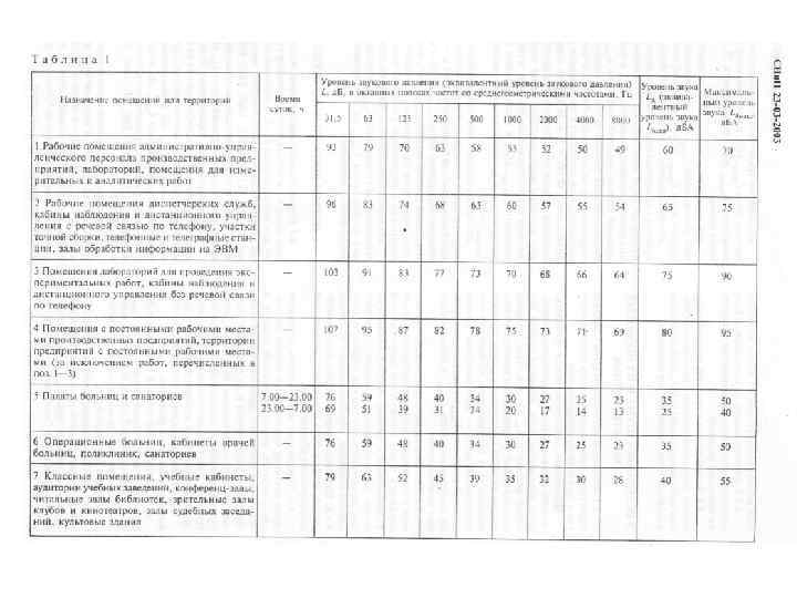 В случае постоянного шума нормируются уровни звукового давления L, д. Б в октавных полосах частот 31, 5; 63; 125; 250; … 8000 Гц