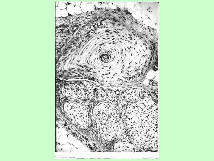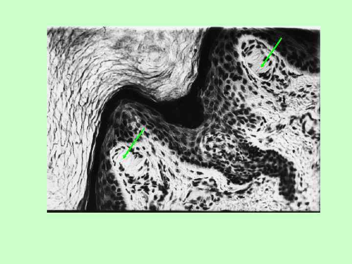 Свободное нервное окончание в соединительной ткани Колба Краузе холодовые Тельце Руффини Тельце Майснера тактильные • дерма, • соед. тк. суставов соед. тк. тепловые, давление