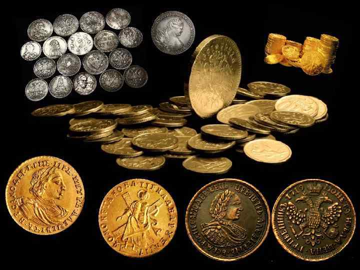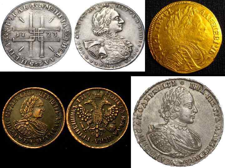 Новый тип денег вводился постепенно, чтобы избежать народных волнений. К окончанию Северной войны в 1721 году Пётр провозгласил себя императором, дав начало новой эпохе. В 1718 году последний раз дата ставится в виде букв, а в 1723 появляются медные 5 копеек (по стопе 40 рублей из пуда), завершившие денежную реформу. При Петре I впервые в обращение поступают золотые монеты, названные червонцами. Их курс был плавающим (около 2 рублей), но вес долгое время оставался стандартным - 3, 47 г. Также выпускались двойные червонцы.
