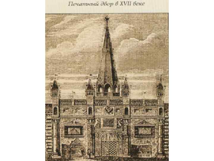 • Влияние внешних факторов не могло не сказаться на развитии образования, науки и культуры. Большинство населения страны было безграмотным, отсутствовало женское образование, в школе обучали лишь азам грамоты и основам православия. Но, несмотря на все это, в 17 веке не умирает книжное дело – продолжается создание рукописей и выпуск печатных книг. • В начале 17 века начинает издаваться первая рукописная газета «Куранты» , редактировавшаяся в Посольском приказе. Материал, служивший основой для газеты, отбирался путем обработки сведений заграничных посольств, а также информации, содержавшейся в иностранных газетах и журналах. • В первой четверти 17 века издательство печатных книг происходило главным образом в Московской типографии, однако после захвата столицы польскими интервентами центр книгопечатания переместился в Нижний Новгород. После освобождения Москвы вновь были собраны мастера печатного дела, и началось производство печатных книг, первой из которых стал «Псалтырь» 1615 года. Пятью годами позже был построен Московский печатный двор, помимо которого в столице действовало еще две типографии, одна из которых была учреждена видным просветителем Симеоном Полоцким.