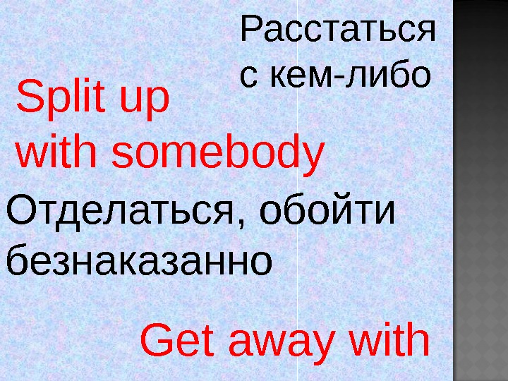 Split up with somebody Get away with Расстаться с кем-либо Отделаться, обойти безнаказанно