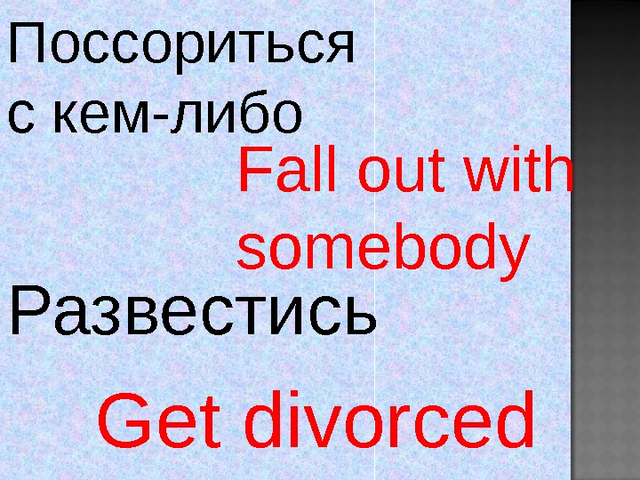Fall out with somebody Get divorced Поссориться с кем-либо Развестись