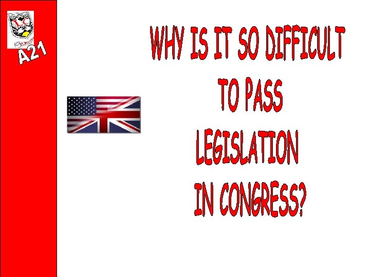The reasons are that Congress is actually DESIGNED NOT TO WORK. The system of CHECKS AND BALANCES is such that the only way anything can be done is through a very rigorous set of COMPROMISES • Between institutions • Between Parties • AND often Within Parties There are 7 factors that have been considered by Anthony Bennett as to why legislation is so difficult to pass:
