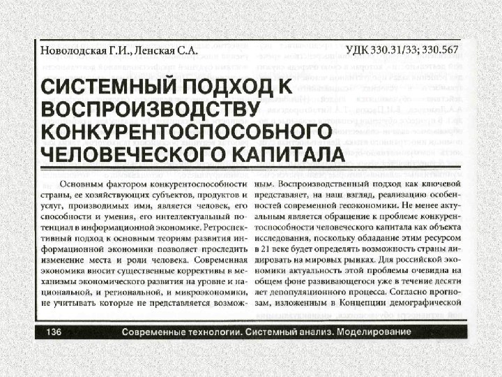 Теории человеческого капитала посвящена статья Новолодской и Ленской «Системный подход к воспроизводству конкурентоспособного человеческого капитала» .