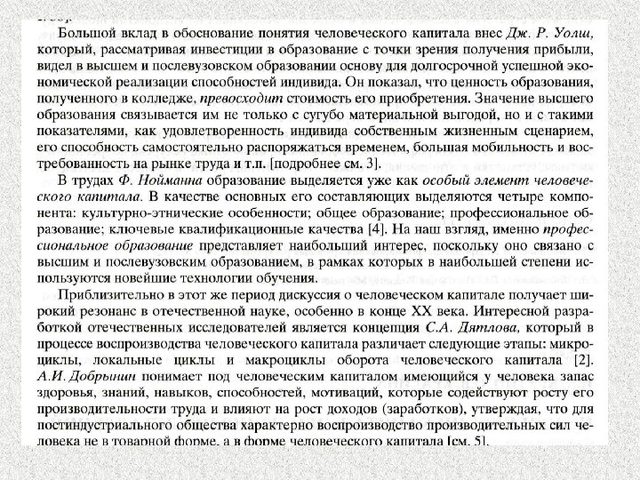 9. Мордовин С. К. Управление человеческими ресурсами / С. К. Мордовин. – М. : ИНФРА-М, 1999. - (Модульная программа для менеджеров) 10. Новолодская Г. И. Системный подход к воспроизводству конкурентоспособного человеческого капитала / Г. И. Новолодская, С. А. Ленская // Современные технологии. Системный анализ. Моделирование: научный журнал / Ир. ГУПС. – 2005. - № 2. – с. 136139 11. Платонова Е. Д. Роль теории человеческого капитала в социально-экономическом развитии России / Е. Д. Платонова, Н. Г. Фадеева // Социально-гуманитарные знания. – 2007. -№ 2. –с. 163 -173 12. Российская газета / Уч-ль Правительство РФ. – М. , 1990 -