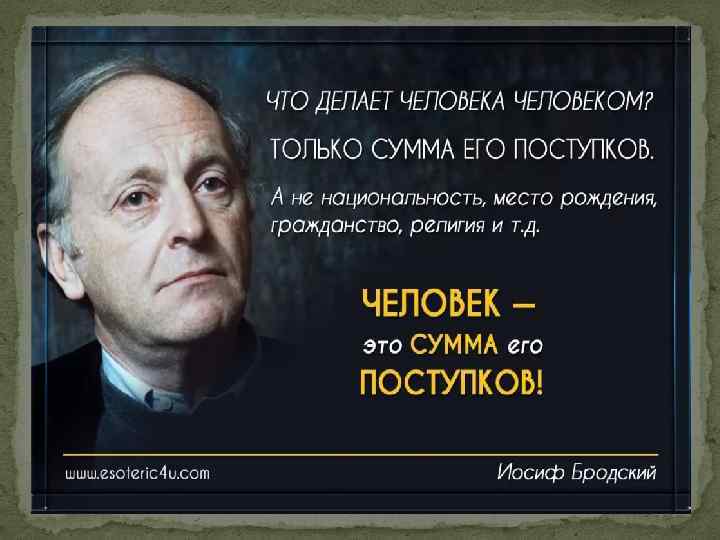 Что же делает человека человеком? Только сумма его поступков. Человек всегда пожинает плоды своих поступков - и всегда в зависимости от своей мотивации, то есть, от намерения, с которым он совершает поступок.