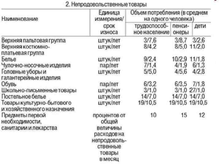 Потребительская корзина – рассчитанное государством минимальное количество Т и У, заложенных в прожиточный min на 1 год