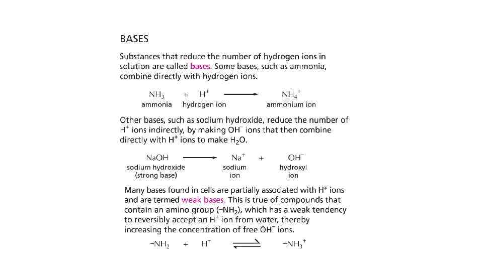 General properties of acids and bases • Hydronium ion is considered as a "proton" • Acids give up proton in aqueous solution • More easily it gives, stronger it is • Bases bind proton, and forms free hydroxyl ions in aqueous solution • More easily it binds, stronger it is