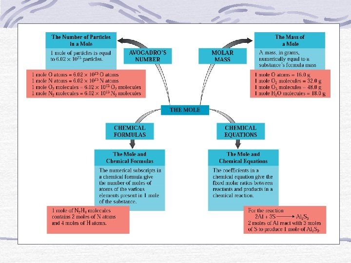 Types of Chemical Particles Atoms - represented by the symbol of an element (C, Ag, N, Na, Cl, Fe, Pb, S, etc. ) Molecules - represented by multiple symbol(s) of NONMETAL atoms/elements (CO 2, H 2 O, O 2, CH 4, etc. ) Ions - represented by the symbol/formula of an ion Formula Units - represented by the formula of an IONIC compound (Na. Cl, Ag. NO 3, Fe 2 O 3, etc. ) 1 mole = 6. 02 x 1023 particles (a conversion factor)