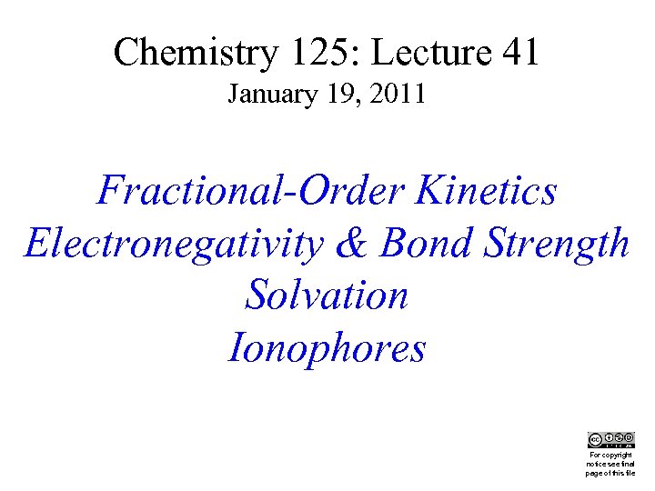 Chemistry 125: Lecture 41 January 19, 2011 Fractional-Order Kinetics Electronegativity & Bond Strength Solvation Ionophores This For copyright notice see final page of this file