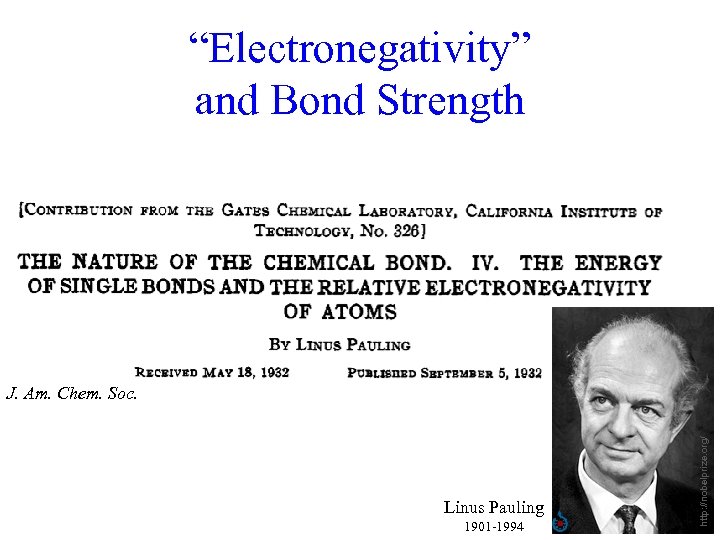 “Electronegativity” and Bond Strength Linus Pauling 1901 -1994 http: //nobelprize. org/ J. Am. Chem. Soc.