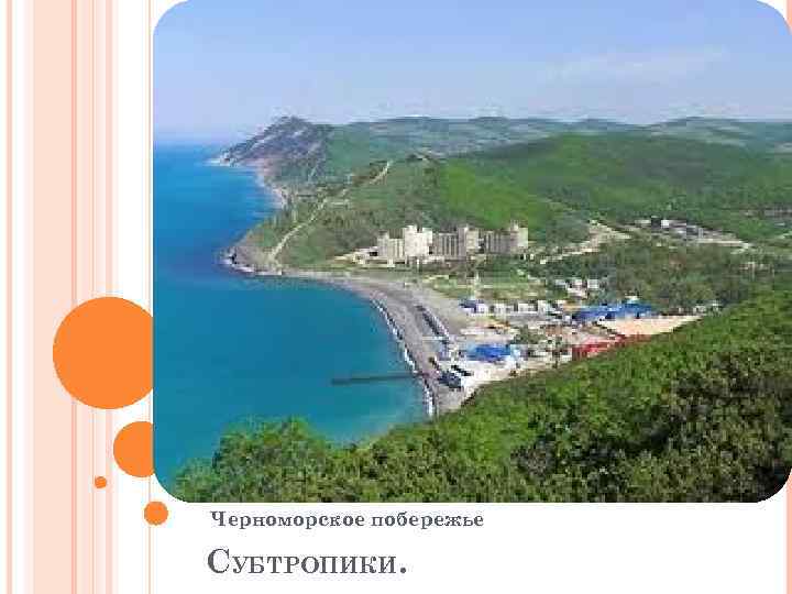 КЛИМАТ Зимы теплые. Снег выпадает редко (Причерноморский хребет защищает побережье от северо восточных ветров. Черное море, отдавая накопленное за лето тепло, смягчает климат) Лето – жаркое
