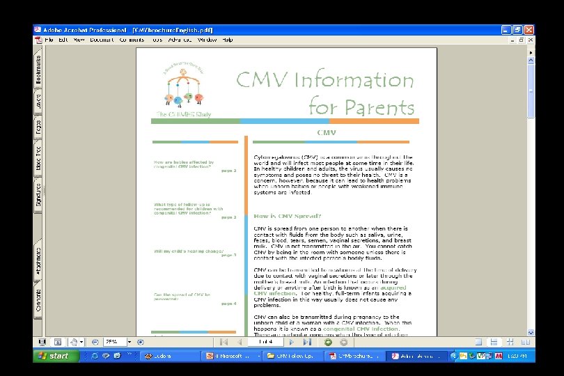 Objectives Define the long-term audiologic/otologic outcome in children with congenital CMV infection Determine the clinical validity and utility of CMV screening: Øin the detection of hearing impairment in the newborn Øin the prediction of hearing impairment with onset during infancy or in the early years of life