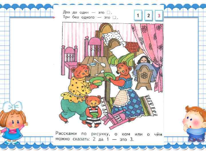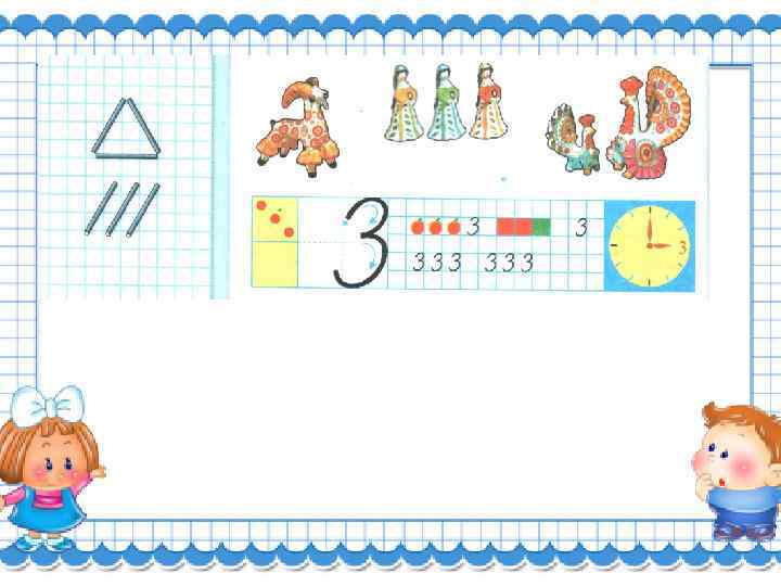 Перед нами - цифра три. Повнимательней смотри. Нарисуй, дружок, пока Два цветочных лепестка. Вправо смотрят лепестки: Не задерживай руки. Карандаш останови! Получилась цифра три!