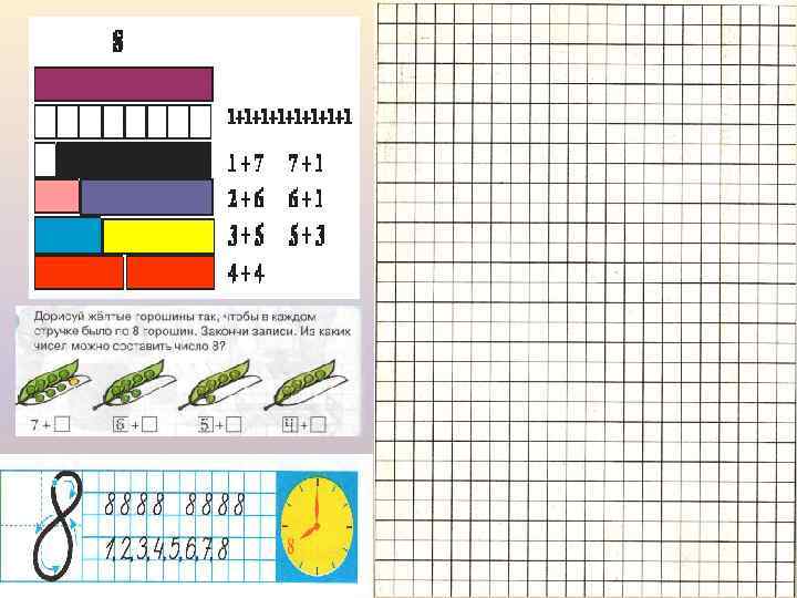 Сказка. «Кто поможет цифре 8 ? » – Ой-ей-ей! – плакала цифра 8, – я упала, ушибла бок и опаздываю на урок. Сегодня дети должны учить цифру 8. Если я не приду, они меня не выучат. – Давай мы поплывем на урок вместо тебя. Из двух овальных облаков дети могут сделать цифру 8, – сказали два облака. – Нет, вы слишком большие и не поместитесь в классе, – грустно возразила цифра 8. – Может, я полечу на паутинке в школу вместо тебя? Я похож на маленькую Восьмерку, и у меня восемь ножек, – пропищал паучок. – Нет, ты слишком маленький, и ветер может отнести твою паутинку совсем в другую сторону, – печально ответила цифра 8.