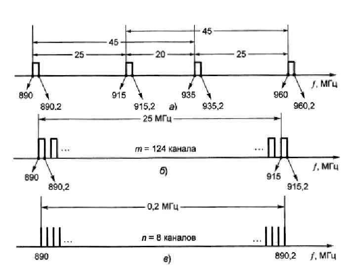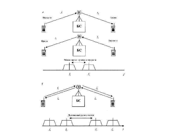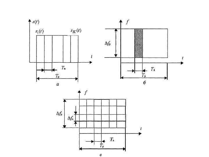 Число каналов связи для FDMAсистем определяется соотношением: Спектры канальных сигналов (а) и распределение частотновременного ресурса (б) между абонентами при FDMA.