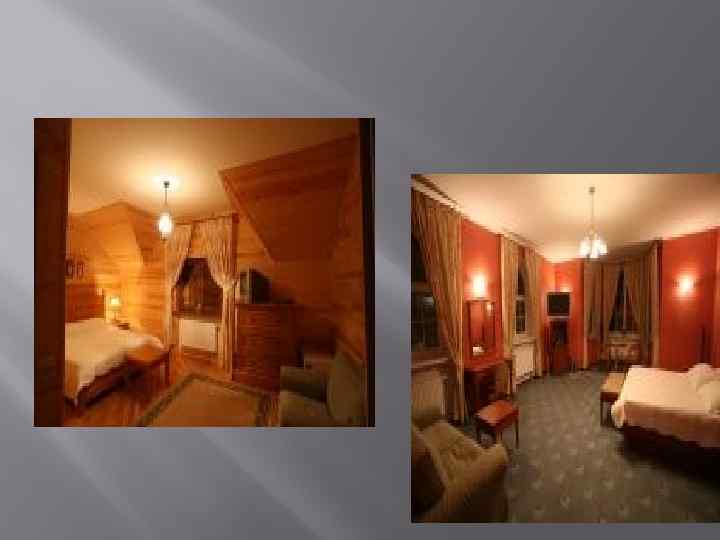 Три Шале VIP –класса. В каждом четыре 2 -местных номера на 2 и 3 -ем этаже, 24 основных места, 16 дополнительных.