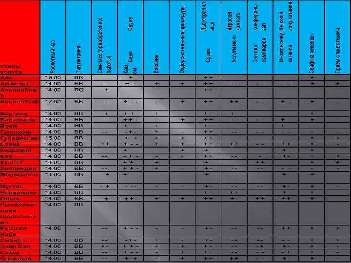 Услуги отеля: кафе-бар "Traveller`s Cafe" (50 -60 мест), паб "Клевер", бесплатный Wi-Fi, ночной клуб "Ays-Bunker", охраняемая автостоянка, пейнтбол, баня (10 -12 чел. ), беседка с мангалом, комната для хранения горнолыжного инвентаря, банкомат, платежный терминал.