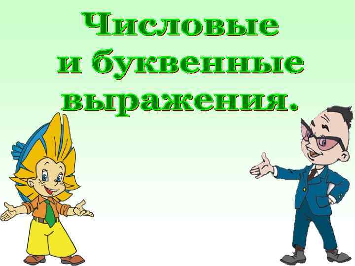 Числовые выражения – это такие выражения, которые составлены из чисел, знаков математических действий и скобок. Буквенные выражения – это выражения, составленные из чисел, букв, знаков математических действий и скобок.