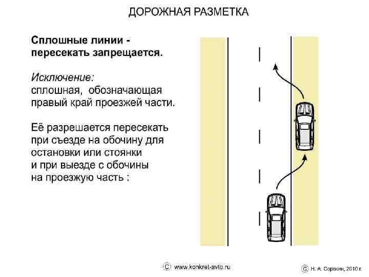 Линии 1. 1, 1. 2. 1 и 1. 3 пересекать запрещается. Линию 1. 2. 1 допускается пересекать для остановки транспортного средства на обочине и при выезде с нее в местах, где разрешена остановка или стоянка