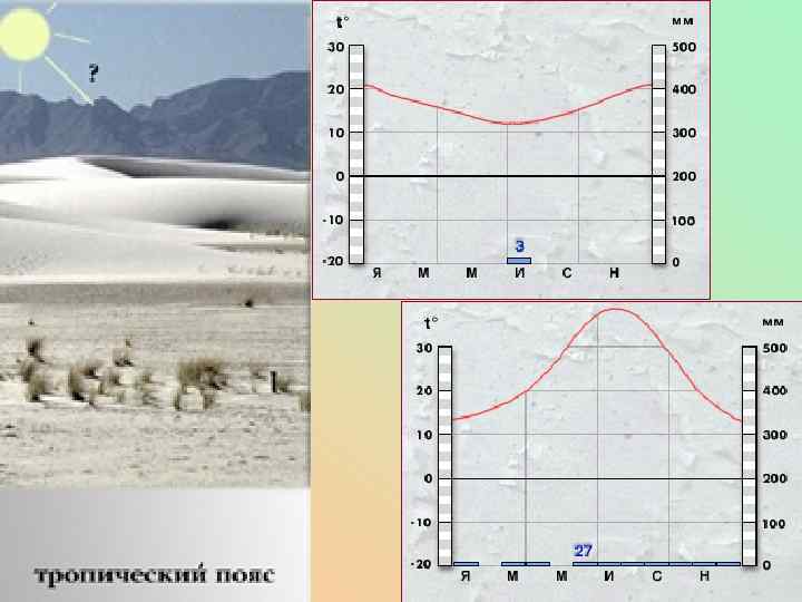 Клімат Африки. Середні температури зими і літа річне кількість опадів. У січні: від +8 С на півночі до +24 С на півдні. Від 3000 мм опадів на західному узбережжі Африки; від 1000 мм до 2000 мм в екваторіальній Африці; Менше 100 мм опадів у районі тропічної Африки. У липні: від +32 С на півночі до + 8 С на півдні кліматичні пояси Основні: екваторіальний, тропічний; перехідні: субекваторіальний, субтропічний.