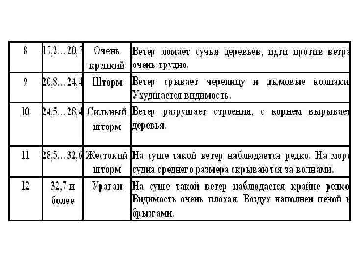 Шкала для визуальной оценки силы ветра