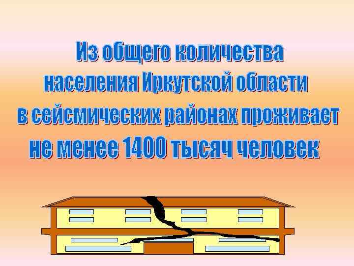 Среднесрочный прогноз сейсмообстановки на территории области свидетельствует о возможном возникновении очагов землетрясения, прежде всего в южной и средней частях о. Байкал, с интенсивностью колебаний в эпицентре до 10 баллов (по шкале МSК 64). При этом в зону сильного землетрясения с разрушительными последствиями могут войти до 80 населенных пунктов, в т. ч. : Ø гг. Иркутск, Ангарск, Байкальск, Слюдянка, Шелехов, Усолье-Сибирское; Ø н. п. Ангарского, Иркутского, Ольхонского, Слюдянского, Шелеховского районов.
