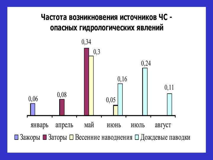 Это затопление территории водой, являющееся стихийным бедствием. Наводнение может происходить в результате подъема уровня воды во время половодья или паводка, при заторе, зажоре, вследствие нагона в устье реки, а также при прорыве гидротехнических сооружений (ГОСТ 19179 -73).
