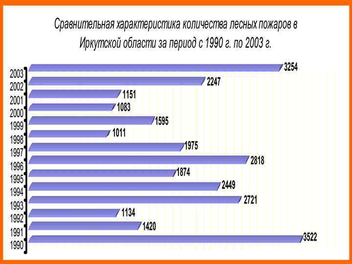 ЛЕСНЫЕ ПОЖАРЫ Это неконтролируемое горение, развивающееся во времени и пространстве (по СТ СЭВ 383 -76). Основная часть территории области (свыше 80%) занята таежными лесами. Леса Иркутской области характеризуются высокой горимостью. Распределение лесного фонда, находящегося во владении лесохозяйственных предприятий области, по классам пожарной опасности выглядят следующим образом: