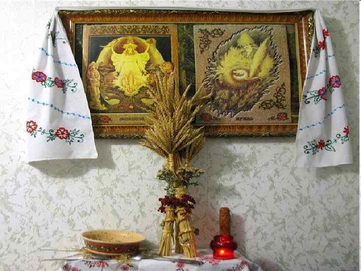 Sviata Vecheria (Holy Supper) Didukh is a sheaf of wheat stalks. It is placed under the icons. The stalks of grain symbolize all the ancestors of the family. Kutia (boiled wheat mixed with poppy seeds and honey) is the most important food of the Christmas Eve Supper and is also called God`s Food. There are twelve courses in the supper in honor of twelve Christ`s Apostles. Meat and dairy products are not permitted. Colach(Christmas bread) is placed in the centre. This bread is braided into a ring and three such rings are placed one on top of the other, with a candle in the centre. The three rings symbolize the Trinity.