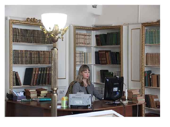 Фонд библиотеки • Основа фонда – личная библиотека семьи Языковых (10 тыс. томов). Литература по богословию, истории, детская литература, ноты. Здесь же находится и домашняя библиотека И. А. Гончарова Жертователи библиотеки: С. Т. и К. С. Аксаковы, М. А. Дмитриев, Д. В. Давыдов, И. А. Гончаров, М. П. Погодин, семья Карамзиных. • Особую гордость библиотеки составляют книги из личного собрания Н. М. Карамзина. Это книги, которыми историограф пользовался при работе над «Историей государства Российского» – летописи, родословные сборники, издания «Rossica» . На полях некоторых книг – собственноручные пометы Карамзина.