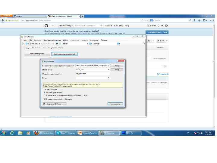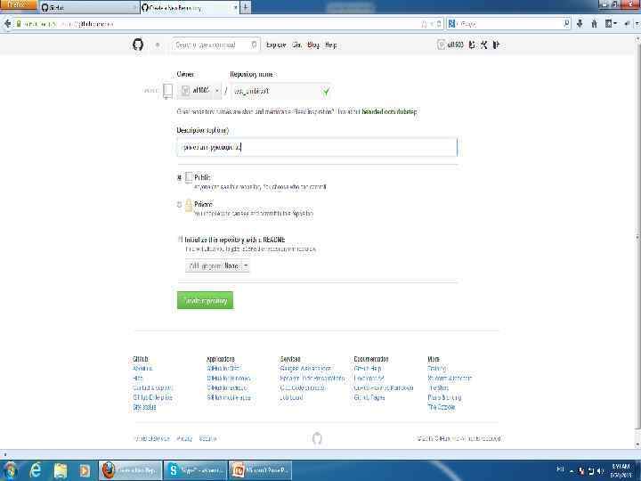 • Кликаем по созданию репозитория (под пунктом 1) • Вводим свободное имя репозитория + описание