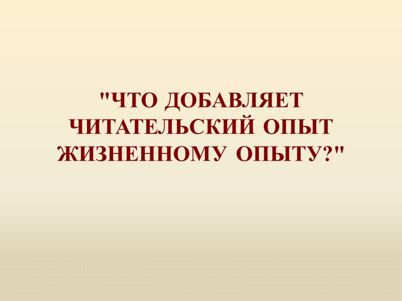 "ЧТО ДОБАВЛЯЕТ ЧИТАТЕЛЬСКИЙ ОПЫТ ЖИЗНЕННОМУ ОПЫТУ?"