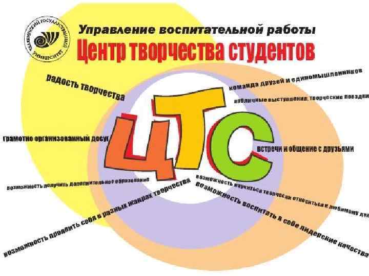 ЧТО ЭТО? Центр творчества студентов – это большая семья, включающее в себя около 16 творческих коллективов и занимающееся организацией досуга студенческой молодёжи путём вовлечения её в творчество.