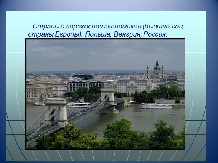 Классификация стран по социально – экономическому признаку. Страны с переходной экономикой Развитые Развивающиеся Польша Венгрия Украина Киргизия Узбекистан