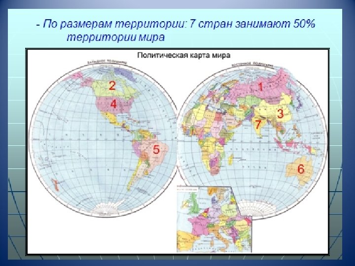 По величине территории: n n n Большие (страны- гиганты) Крупные страны Микрогосударства