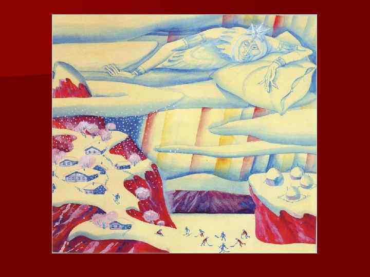 ЧТО СНИТСЯ СОЛНЦУ? ДАВАЙ ПОПРОБУЕМ ОТВЕТИТЬ НА ЭТОТ ВОПРОС! ЗИМЫ У НАС ДОЛГИЕ, НА ПАСМУРНОМ НЕБЕ СНЕЖНАЯ ПЕЛЕНА, КОРОТКИЙ ДЕНЬ ПРОЛЕТАЕТ И СНОВА СУМЕРКИ. СПИТ СОЛНЦЕ… АРКАДИЙ МОШЕВ, КОМИ ХУДОЖНИК, ПРЕДСТАВИЛ СЕБЕ ТАКУЮ КАРТИНУ