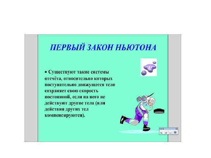 Законы Ньютона Первый закон Ньютона • Если на тело не действует внешняя сила, то тело находится в состоянии покоя или равномерного прямолинейного движения. • Это свойство также носит называние — Инерция тел. из первого закона Ньютона следует: • Любое изменение состояния движения обусловлено действием сил.
