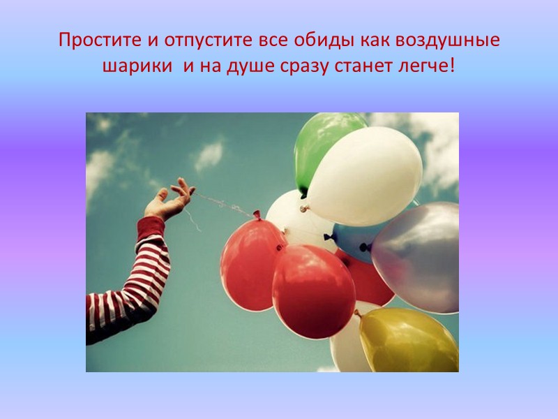 Простите и отпустите все обиды как воздушные шарики и на душе сразу станет легче!
