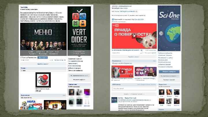 Научно-популярный видеоблог Sci-One Авторский контент Волонтерский проект Команда 40 человек 50 роликов (7 месяцев) Аудитория порядка 50 тысяч человек Возраст аудитории от 18 до 34 (90 % аудитории) Гендерное распределение 70 % мужчины и 30 % женщины 80 % аудитория Россия (50 % Москва и Санкт-Петербург)