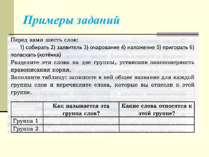 Примеры заданий