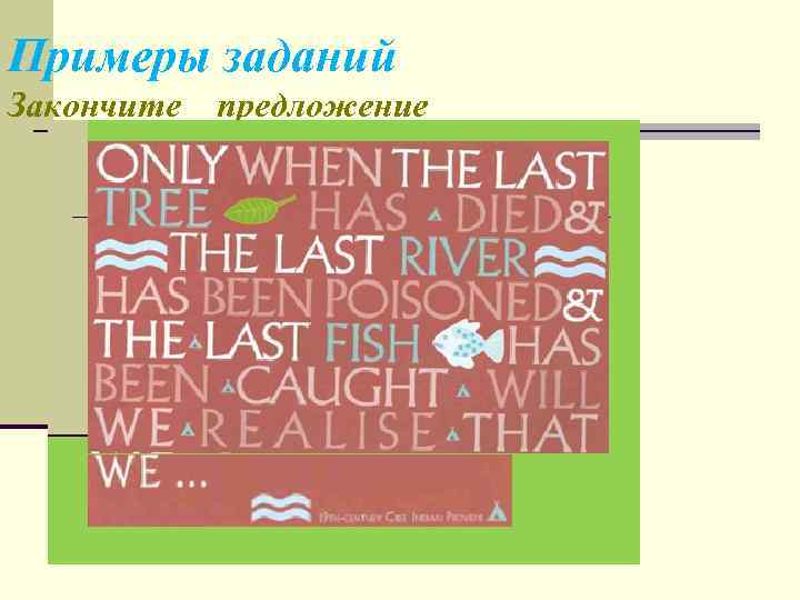 Примеры заданий Закончите предложение