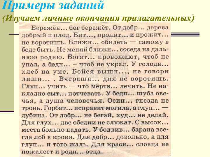 Примеры заданий (Изучаем личные окончания прилагательных)