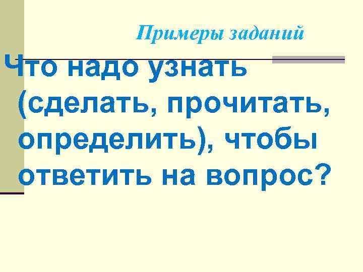 Примеры заданий Что надо узнать (сделать, прочитать, определить), чтобы ответить на вопрос?