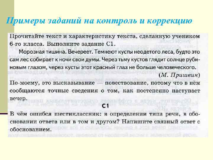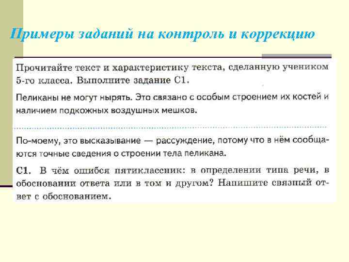 Примеры заданий на контроль и коррекцию