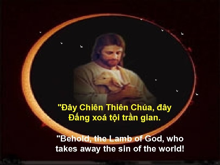 "Đây Chiên Thiên Chúa, đây Đấng xoá tội trần gian. "Behold, the Lamb of God, who takes away the sin of the world!