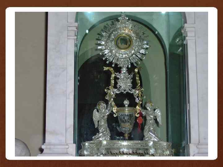 • Событие это произошло в VIII веке, в то время когда Церковь Христова была еще не разделена на католическую и православную. При совершении Божественной Литургии в итальянском городке Ланчано во время Таинства Евхаристии чудесным образом произошло видимое пресуществление хлеба и вина в человеческую Плоть и Кровь