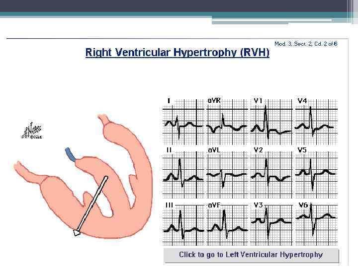 ГИПЕРТРОФИЯ ПРАВОГО ЖЕЛУДОЧКА Ø Диагностируется с трудом, т. к. ЛЖ значительно больше правого и суммарный вектор возбуждения сердца обусловлен возбуждением более мощного ЛЖ. Ø При ГПЖ увеличивается ЭДС и вектор возбуждения ПЖ. Ø Удлиняется продолжительность возбуждения желудочка. Ø Одновременно с гипертрофией ПЖ гипертрофируется правая половина МЖП. Ø Меняется положение сердца в полости грудной клетки.