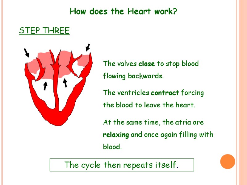 How does the Heart work? The cycle then repeats itself. STEP THREE