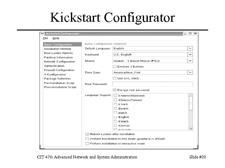 Kickstart Configurator CIT 470: Advanced Network and System Administration Slide #20